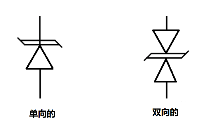 TVS 二極管有兩種類型:雙向和單向。這兩種類型的 TVS 二極管具有不同的符號(hào),如下所示: