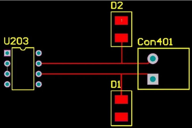 TVS 二極管是用于保護(hù)PCB布局中組件的常用組件,這些組件放置在數(shù)據(jù)線上,一旦電路中接收到ESD脈沖,就會(huì)通過將電流從受保護(hù)組件轉(zhuǎn)移開來。確保 PCB 布局可以對瞬態(tài)保護(hù)進(jìn)行優(yōu)化,并且可以防止炸電路板并且保證一個(gè)功能良好的設(shè)備。