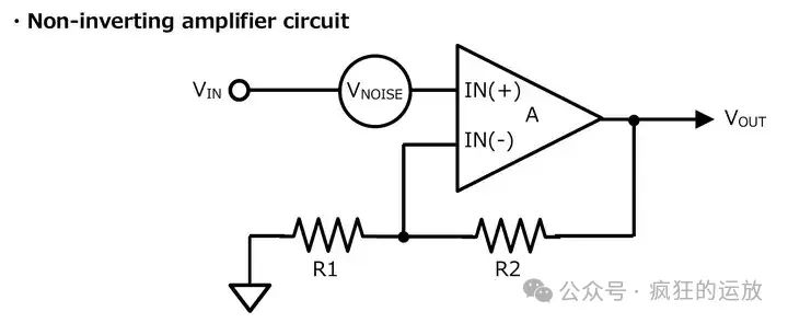 ● Vnoise噪聲源,是施加在運(yùn)放的同相輸入端的。