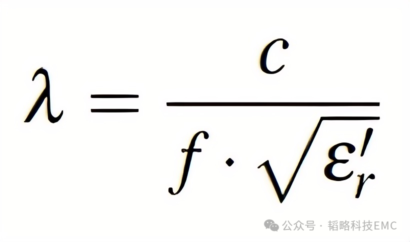 其中,c 是光速,f正弦信號(hào)的頻率,εr‘ 是走線周圍材料的相對(duì)磁導(dǎo)率。