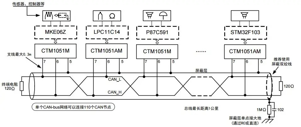 在設計CAN總線、485總線時常需要在差分線兩端加終端電阻(匹配電阻),以減少由特性阻抗突變造成的信號反射。如下圖CAN總線網(wǎng)絡,雙絞線特性阻抗為120歐姆,若不加終端電阻兩端直接懸空,空氣的特性阻抗為無窮大。此時,極易出現(xiàn)圖4所示的信號反射。
